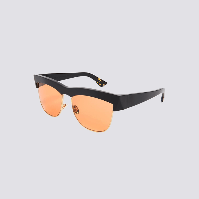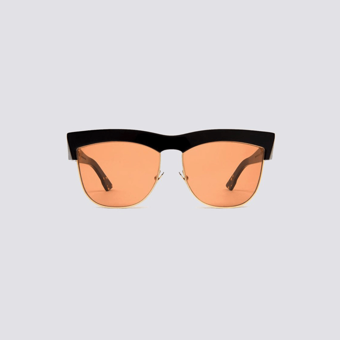 The Italian artist Tina Modotti lived an extraordinary life as an actress, model, muse, photographer, Mexican revolutionary and (possibly) spy. Modotti was a natural choice as inspiration for this directional oversized Flat Top frame. Satin gold Monel metal. Signature 5-barrel ZANZAN monogram hinges. Oversized fit.